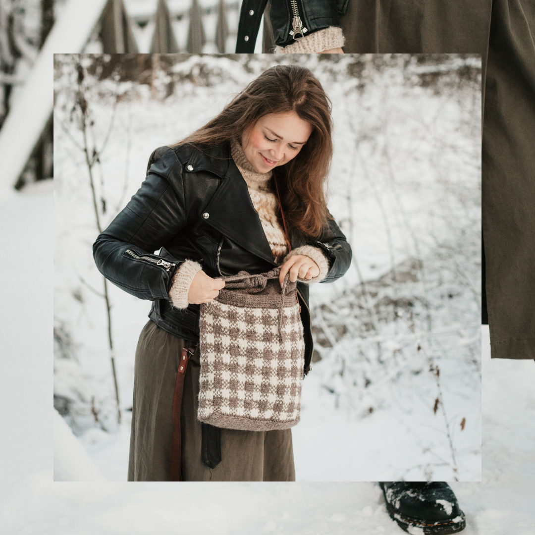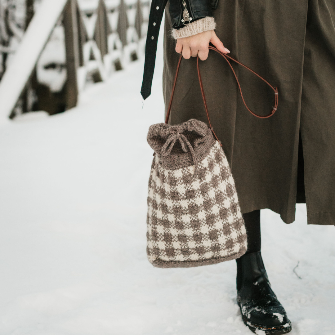 Saat todella hauskan ja melko nopean neulontatyön tämän neuleohjeen kanssa. Saat juuri sopivan kokoisen laukun neulontaprojektillesi tai päivittäisille tarpeillesi.
