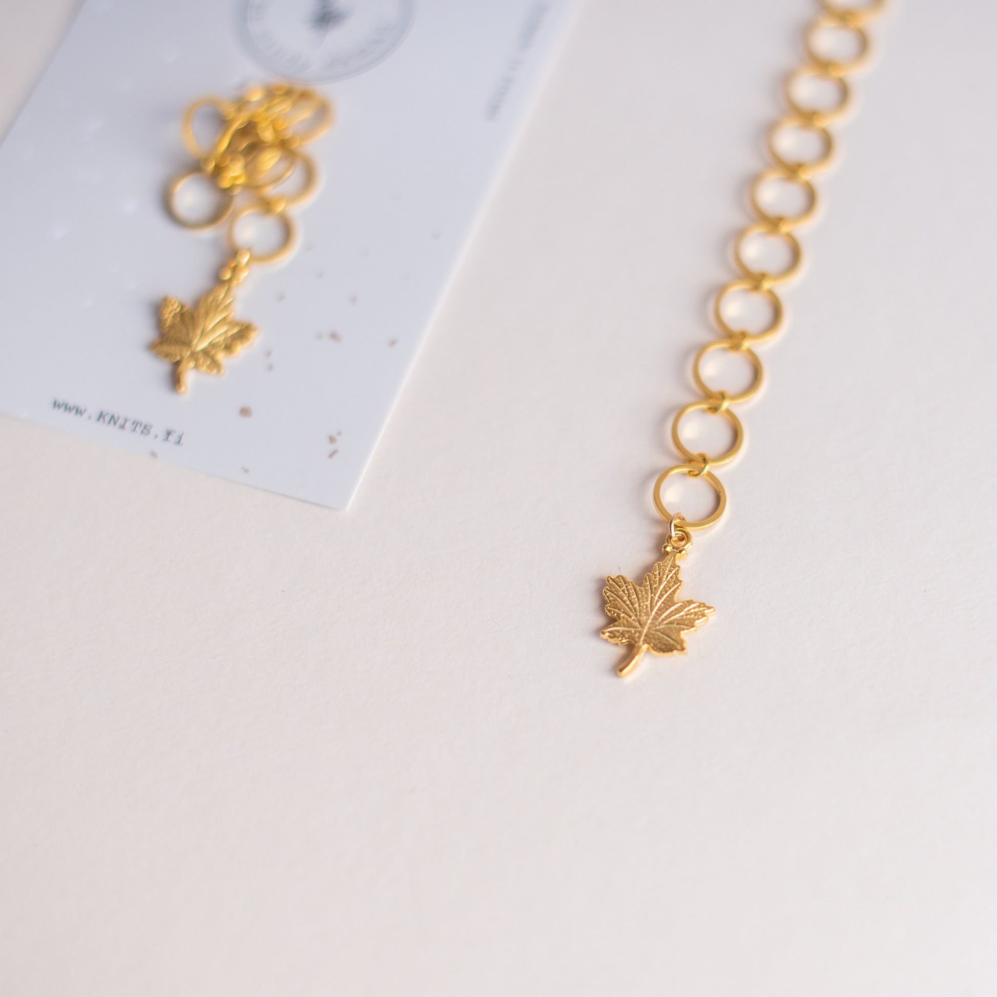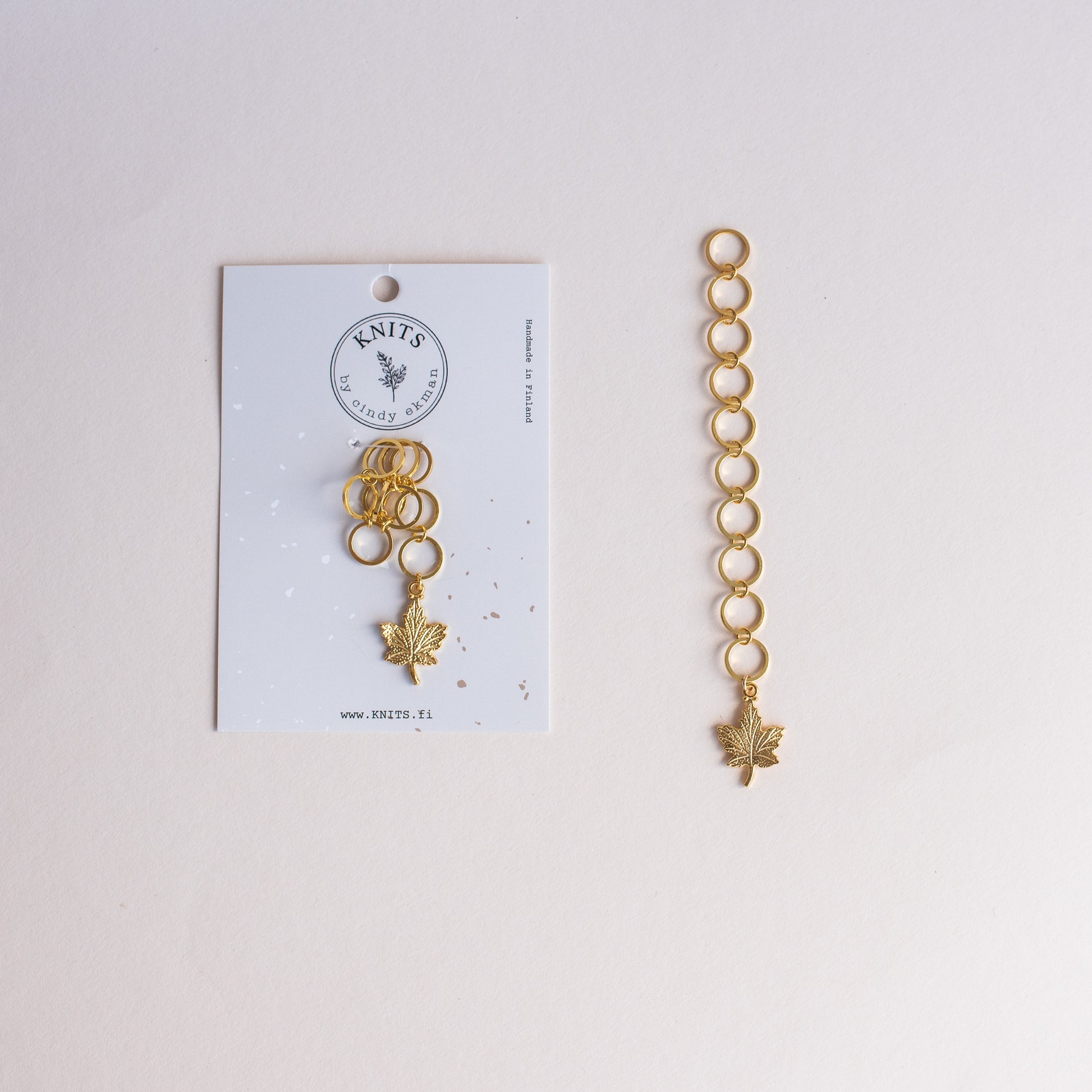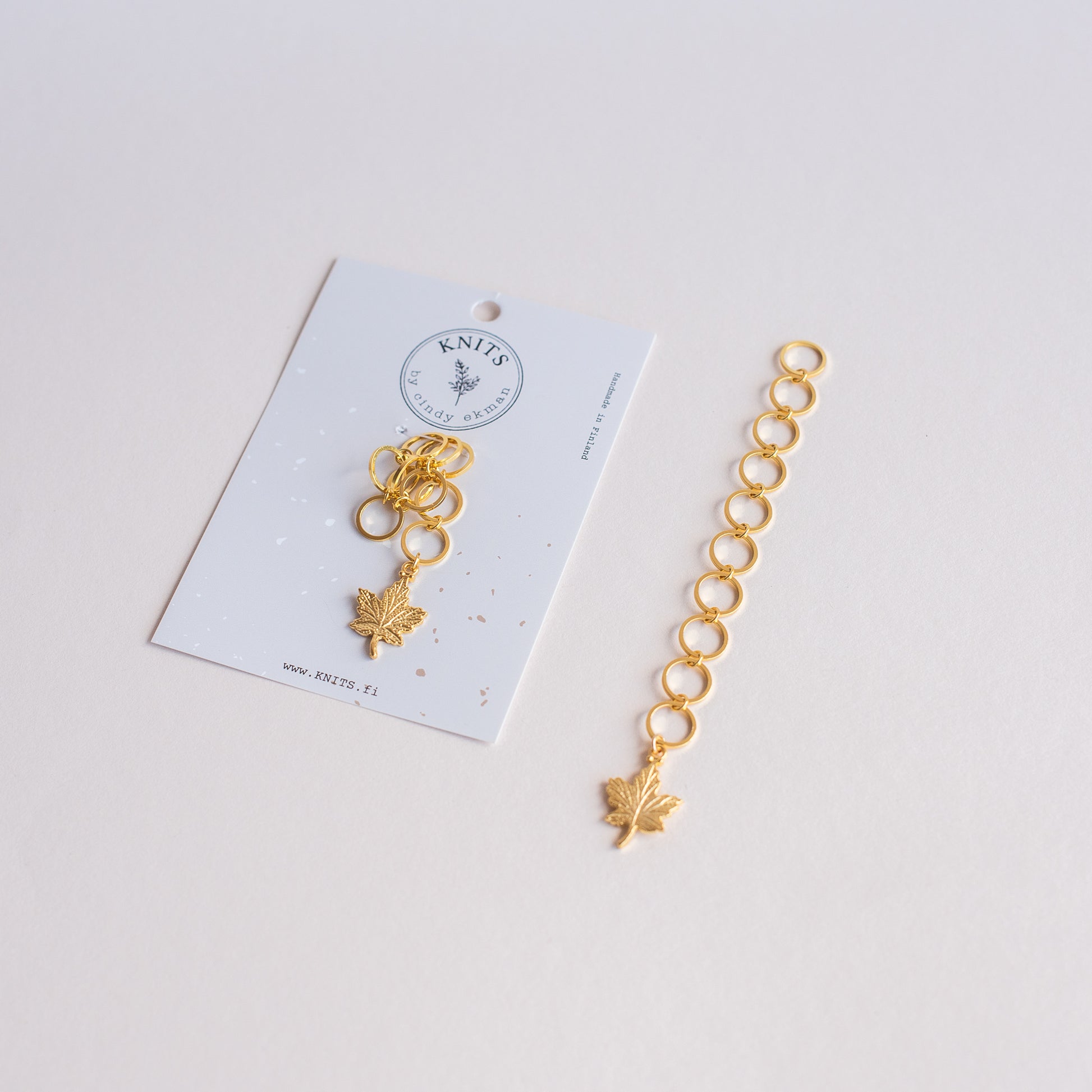 Jokaisen neulomasi rivin jälkeen siirrä yksi rengas kohti koristetta, tietääksesi missä kohtaa lisäyksiä/vähennyksiä olet. Voidaan käyttää jopa 7mm paksuihin puikkoihin.