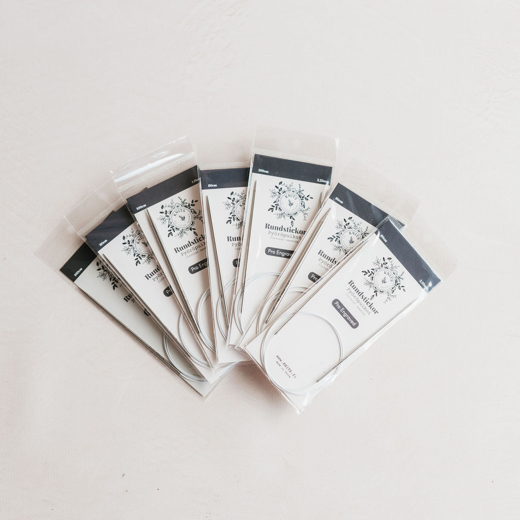 Neulat jokaiseen projektiin. Koska rakastamme magic-loop -tekniikkaa, teimme ensimmäisen pyöröpuikkokokoelmamme alkaen 80 cm pitkistä aina 120 cm pitkiin. Sopivat täydellisesti neulontaan magic loop -tekniikalla.