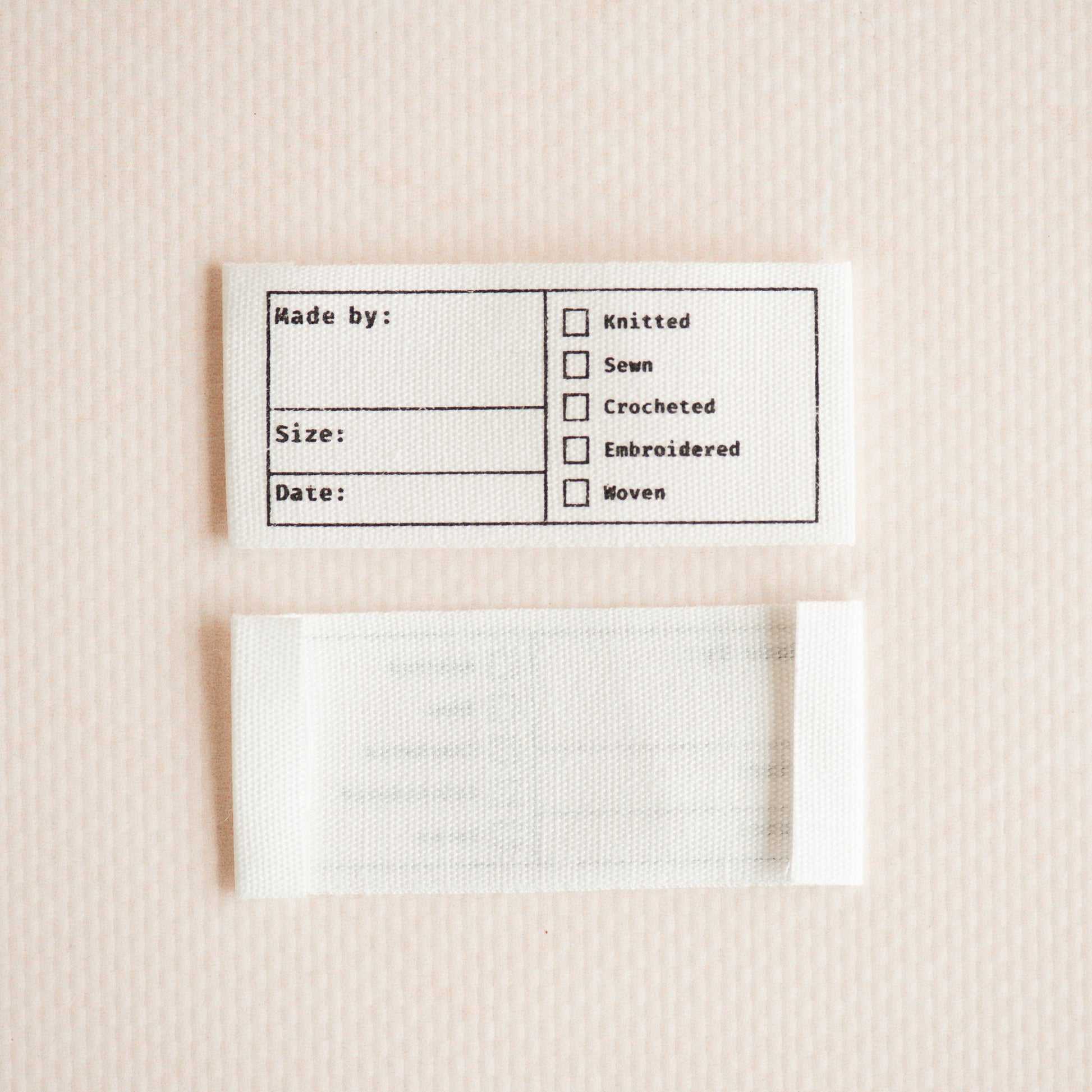 Choose between 6 styles of tags to put that final touch on your handmade garment.