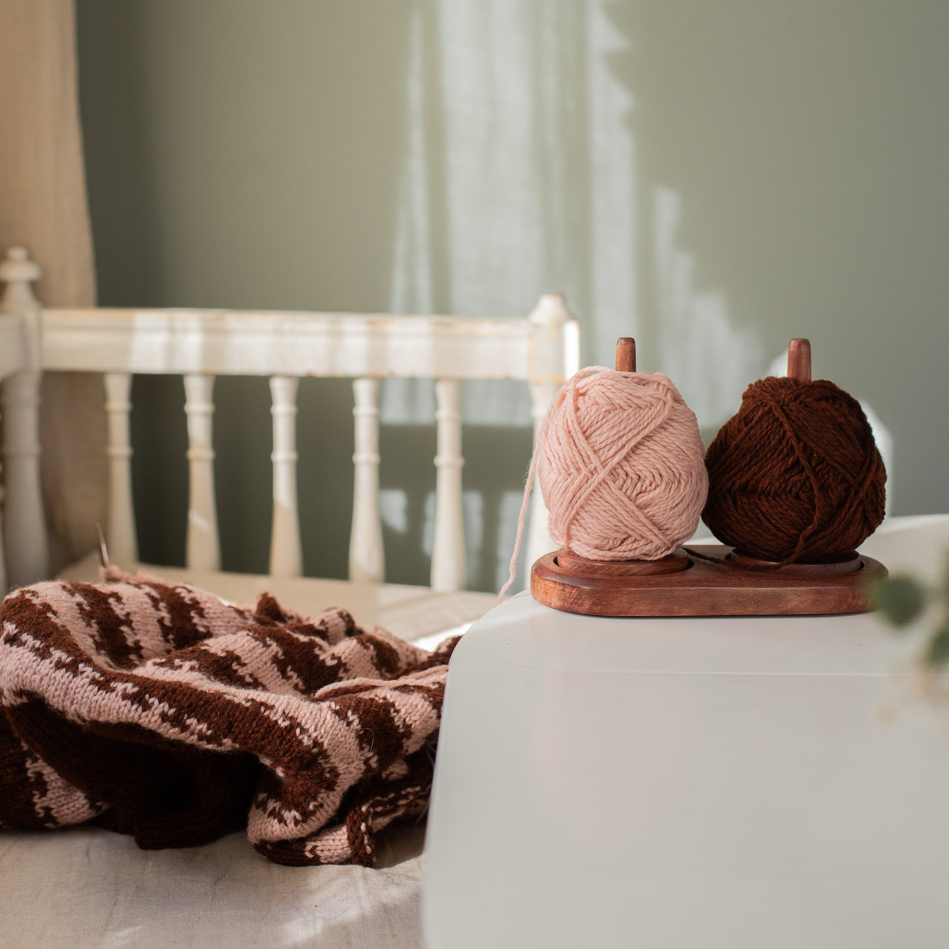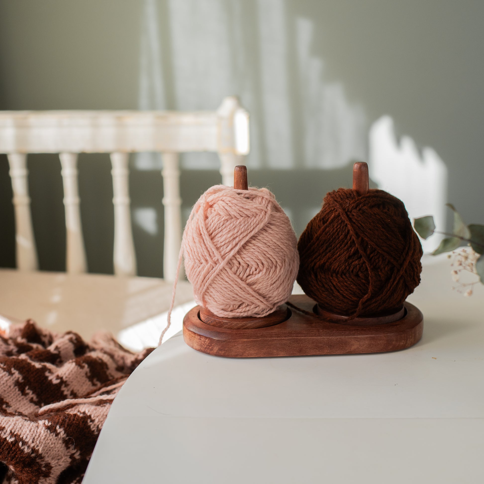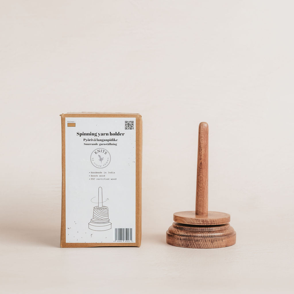 Handmade in India from certified beech wood, this holder is designed to keep your yarn in place and your knitting area tidy. Place this holder on the table in front of you, and the problem is solved! No more chasing runaway yarn balls.