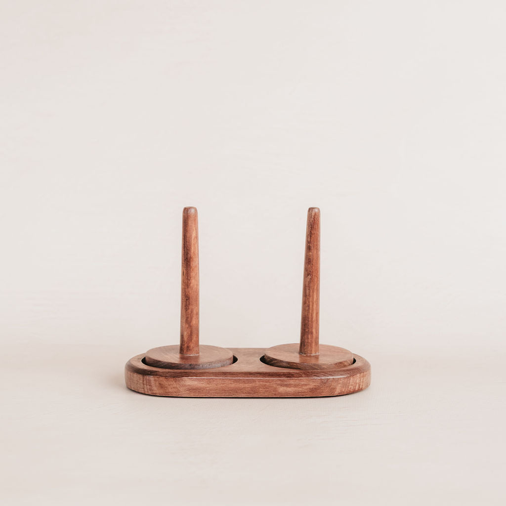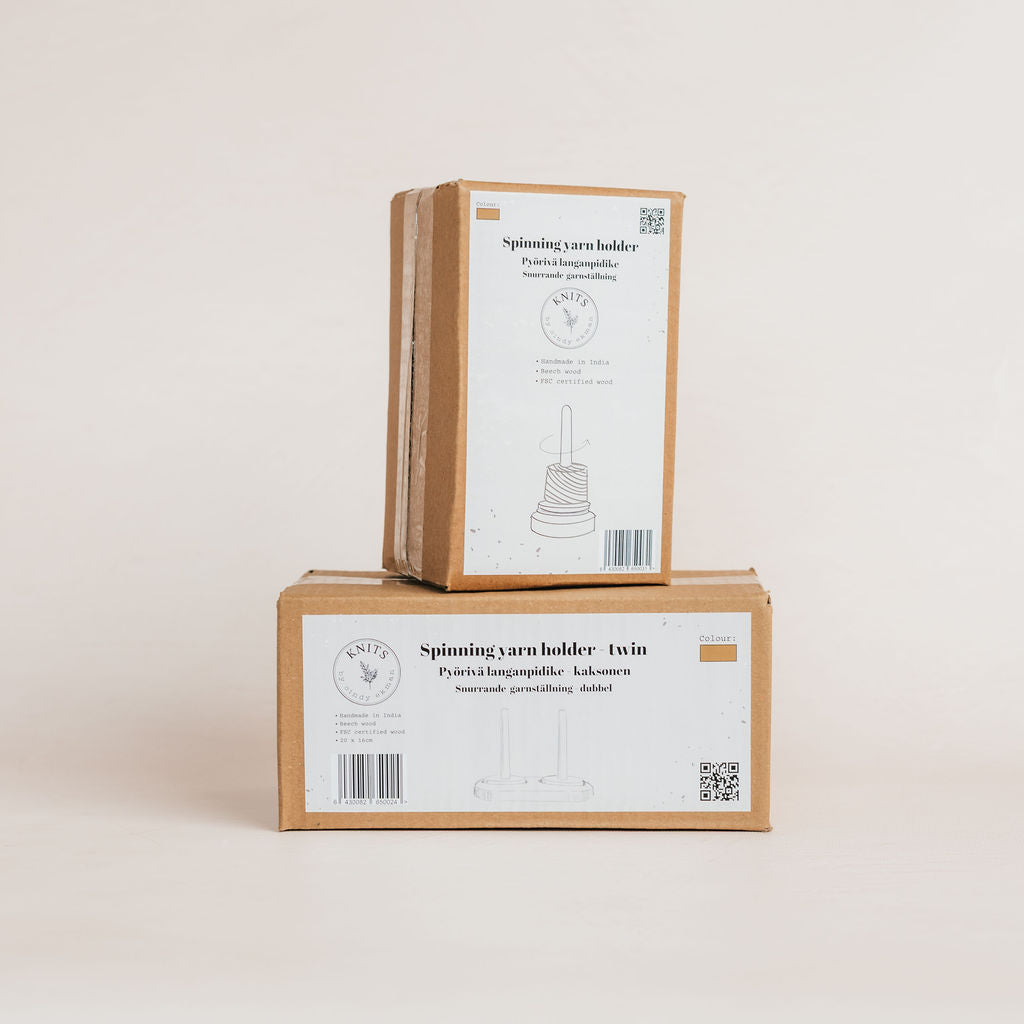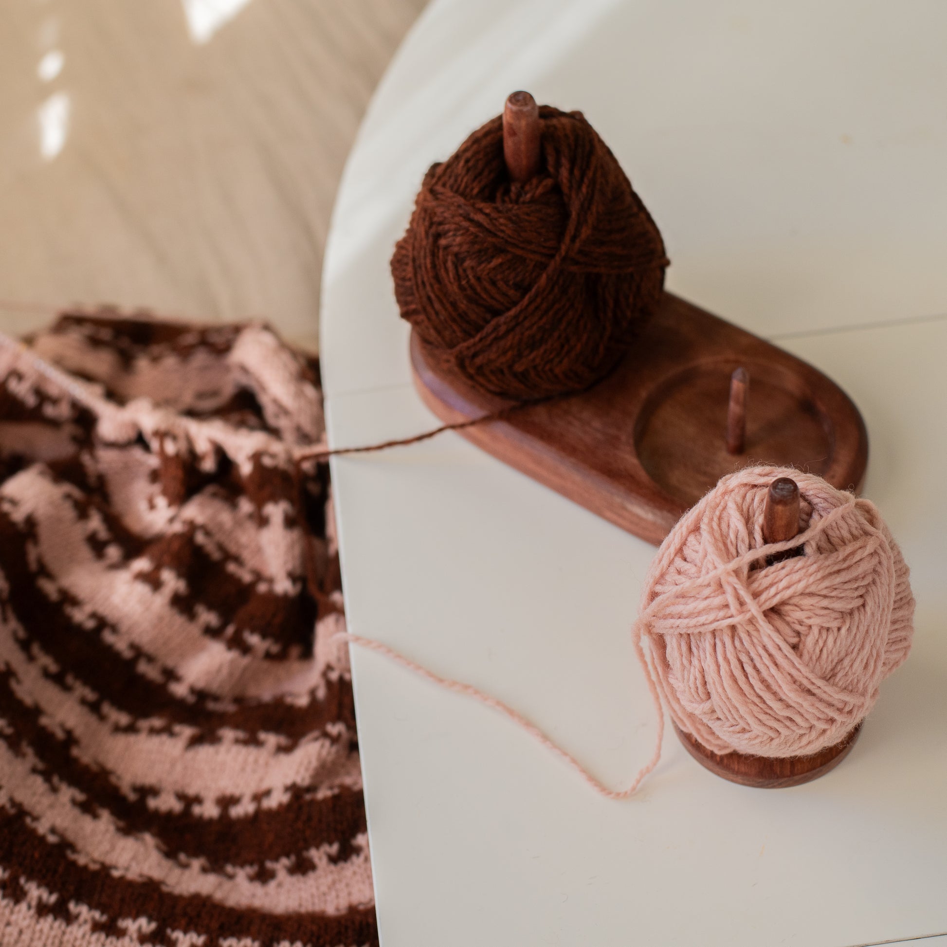 Handmade in India from certified beech wood, this holder is designed to keep your yarn in place and your knitting area tidy. Place this holder on the table in front of you, and the problem is solved! No more chasing runaway yarn balls.