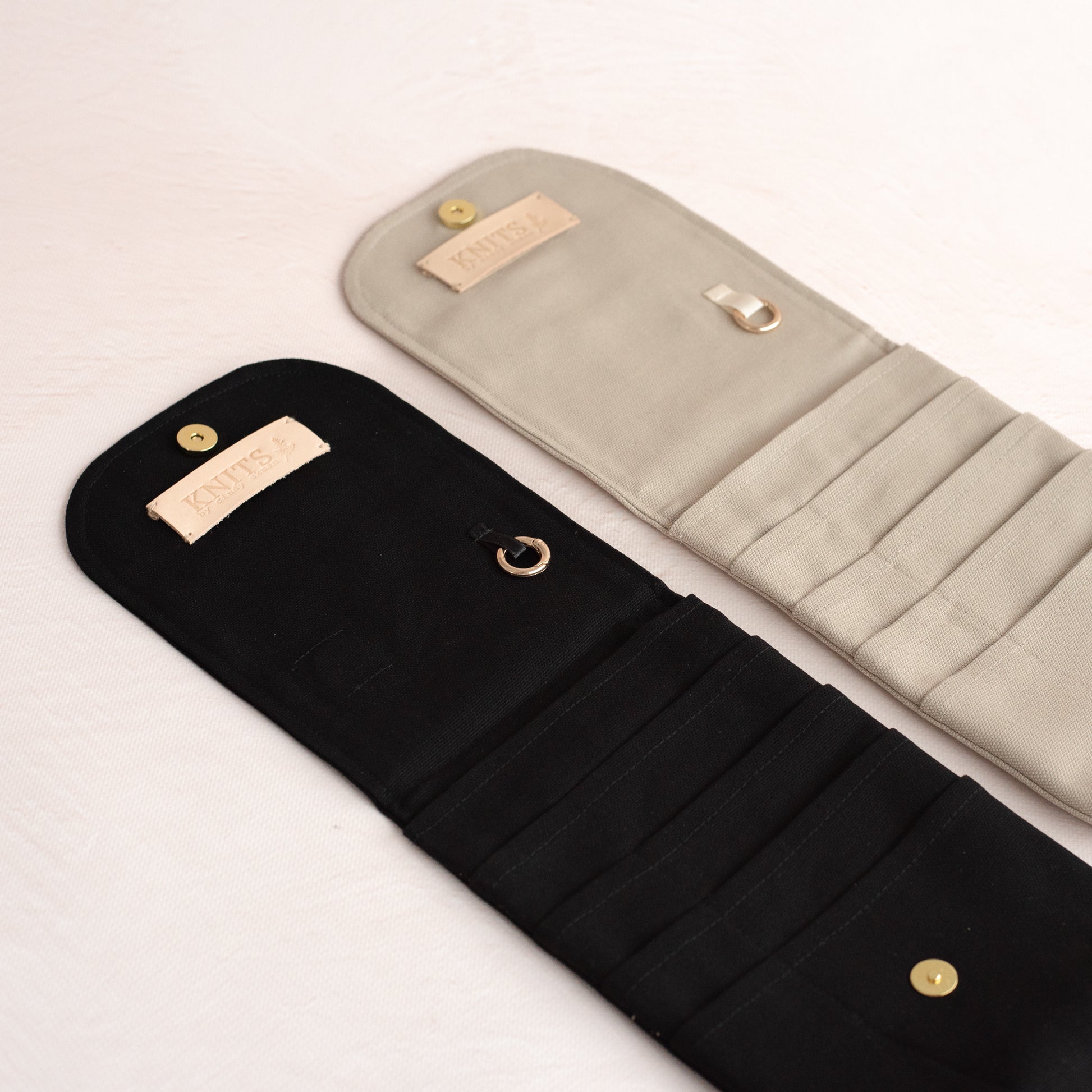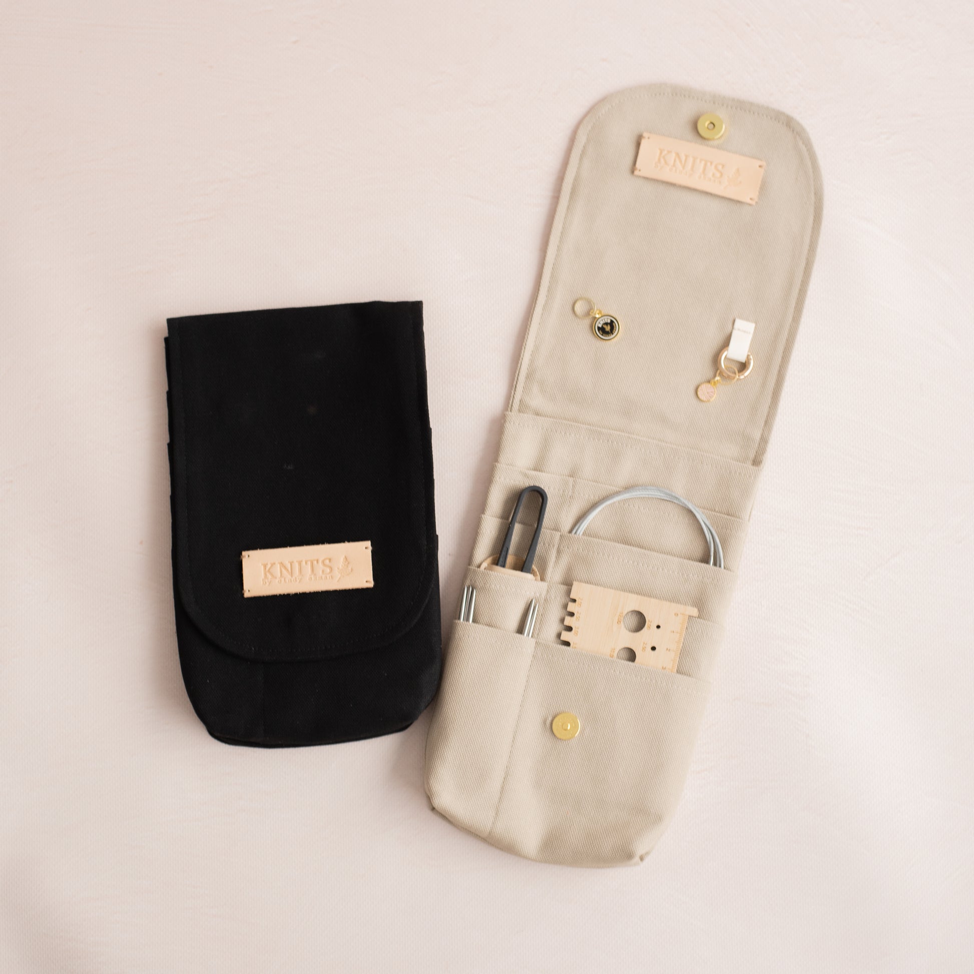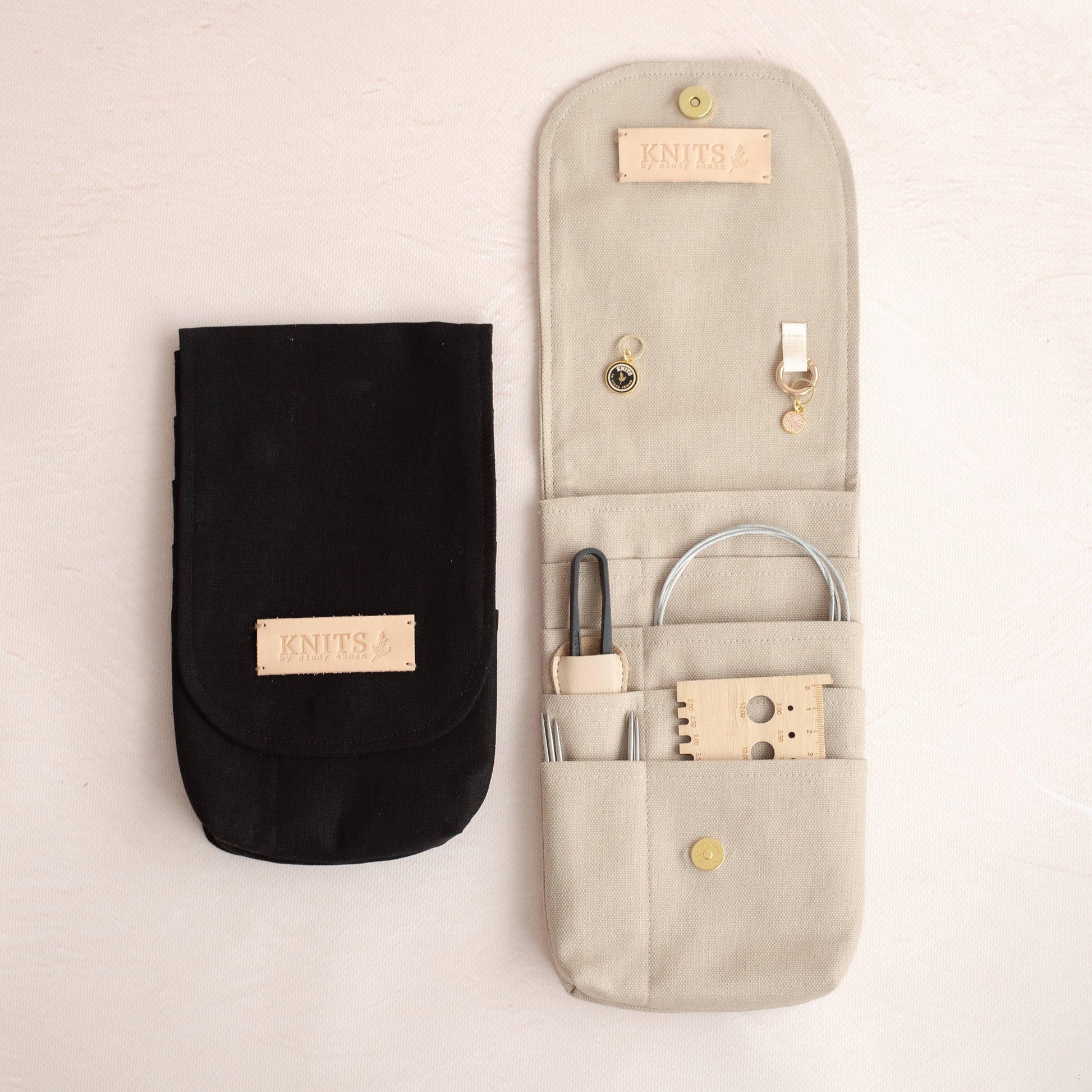 The case has pockets for circular and sock needles, and a big pocket for all the extras.